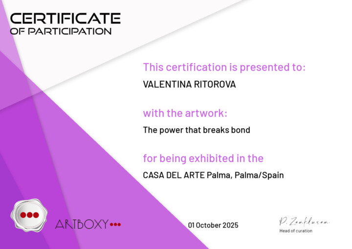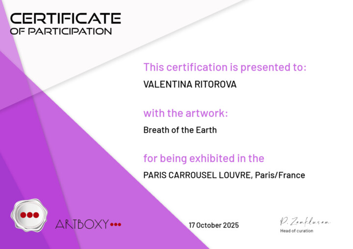 You can see a virtual exhibition in which my paintings There, beyond the horizon, Inspired by the East, In the park, The wind that fuels the flame, Fantasy country are participating